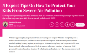 Media Coverage 5 Expert Tips On How To Protect Your Kids From Severe Air Pollution & Pneumonia kills more children than any other infectious disease, but why does it continue to persist? Read More