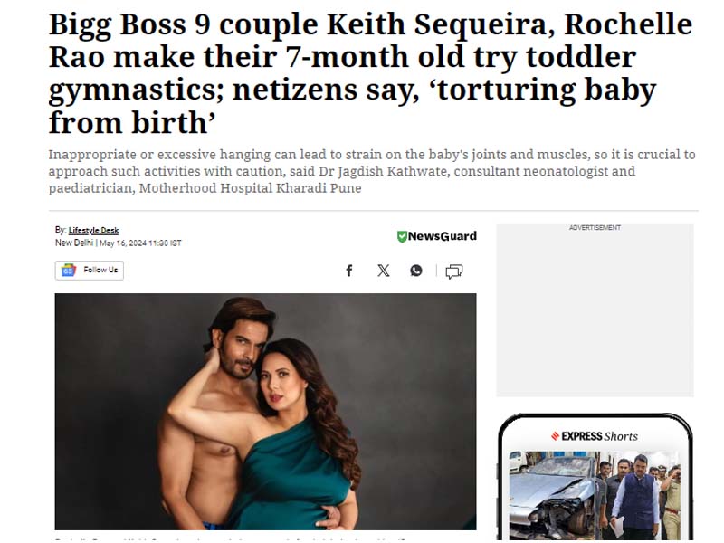 Home Mediacoverage Bigg Boss 9 couple Keith Sequeira, Rochelle Rao make their 7-month old try toddler gymnastics; netizens say, ‘torturing baby from birth Bigg Boss 9 couple Keith Sequeira, Rochelle Rao make their 7-month old try toddler gymnastics; netizens say, ‘torturing baby from birth Check out the main Article