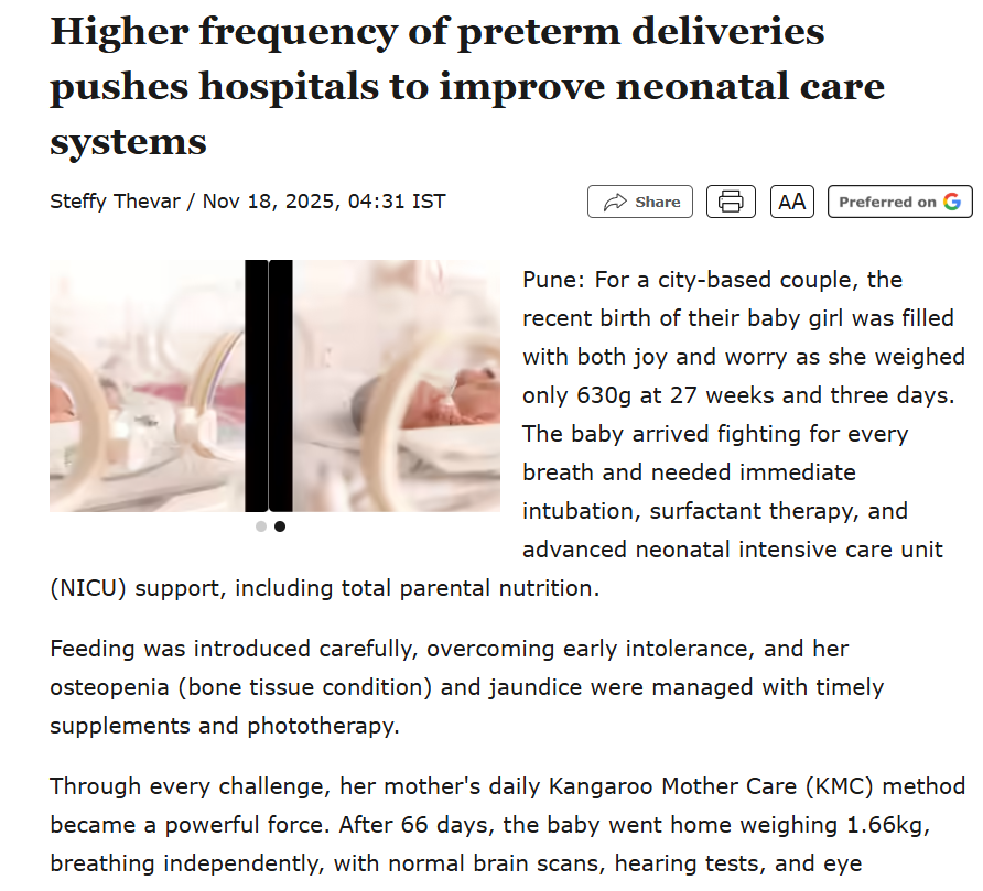 The rising frequency of preterm deliveries in Pune and across India is prompting hospitals to strengthen neonatal care systems to support fragile newborns. Babies born too early often face breathing difficulties, feeding challenges and a higher risk of infections, requiring advanced NICU care, ventilator support and specialised nursing. Hospitals are focusing on practices such as Kangaroo Mother Care, better thermal regulation and improved follow up after discharge to enhance survival and long term outcomes. Dr Tushar Parikh, Senior Consultant Neonatologist and Paediatrician at Motherhood Hospital, Kharadi, highlights the need for robust neonatal infrastructure to manage the growing number of premature births.